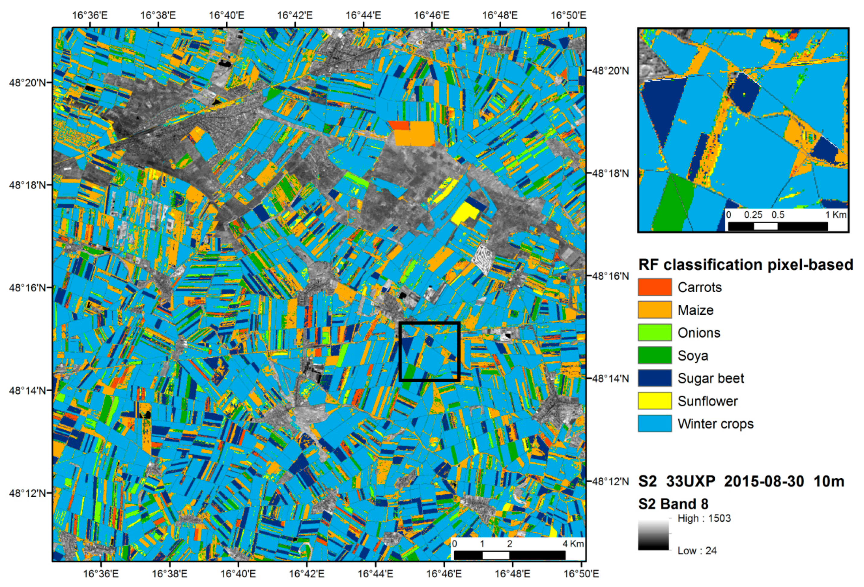 Cultivos clasificados mediante modelo Random Forest (Immitzer et al., 2016)
